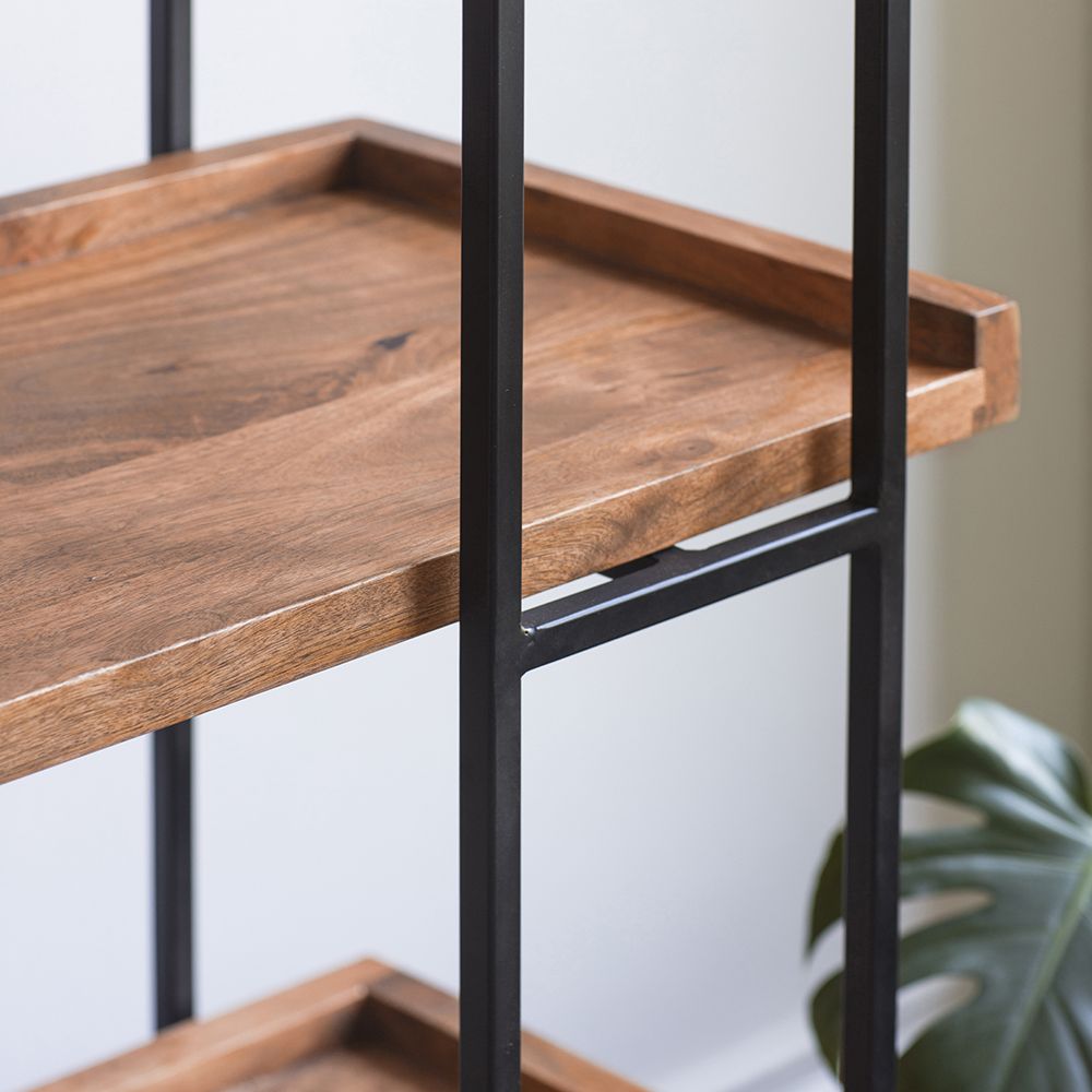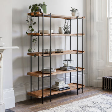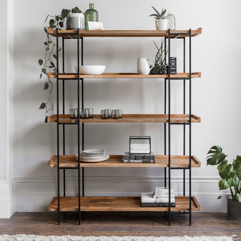 • Five spacious open shelves perfect for books, ceramics, kitchenware, or glassware