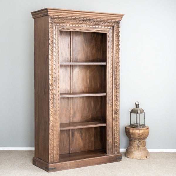 Introducing our Carved Bookshelf with multiple shelves, a versatile and elegant piece designed to enhance your home décor. Handcrafted from premium wood, this large-sized bookshelf is perfect for storing a variety of items, from books to home crockery, offering an ideal storage solution in an almirah-style format.