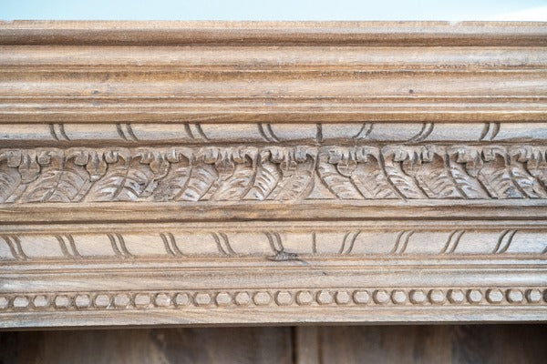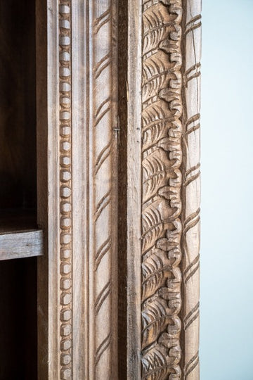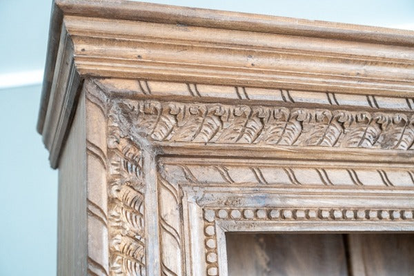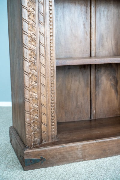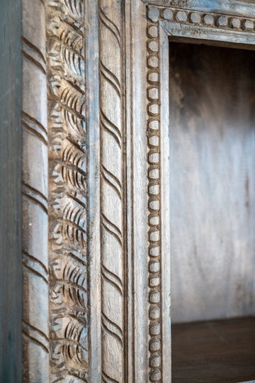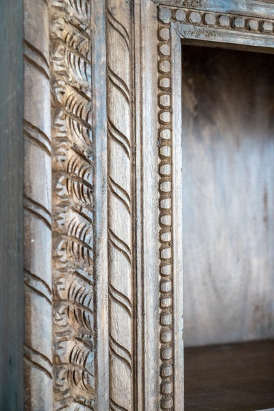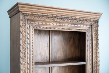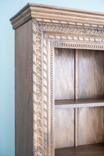 The detailed carvings give it a rich, artisanal feel, while the multiple shelves provide ample space for organization. Whether used in a living room, dining area, or study, this piece adds a touch of traditional charm with its timeless design. Its handcrafted quality ensures it will stand out as a beautiful and functional centerpiece in any room.