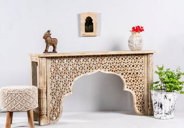 Elevate your home décor with the exquisite beauty of the Vintage Hand Crave Console, a perfect blend of functionality and artistry that will add elegance to your living space.