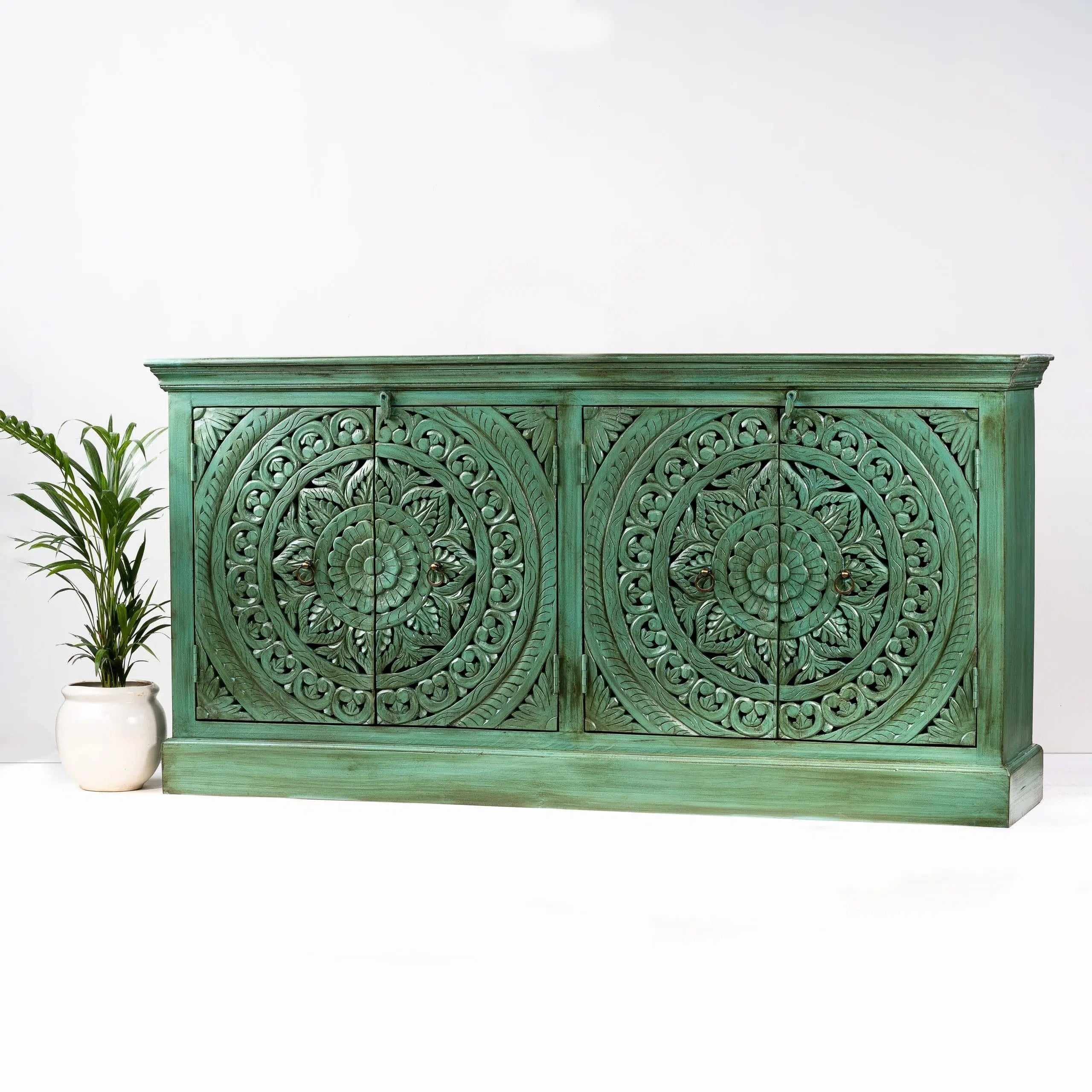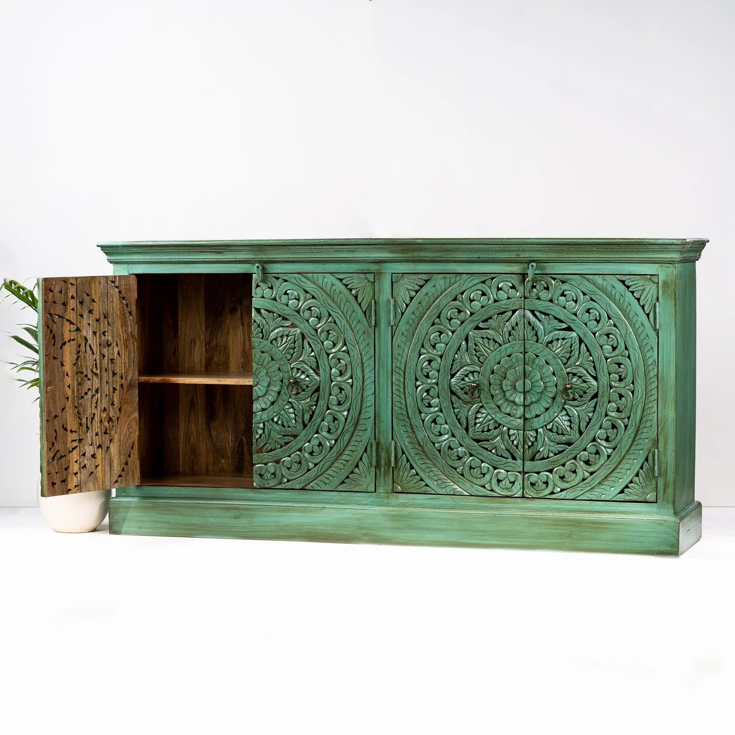 Every detail has been passionately designed, from the intricate carvings to the smooth finish, ensuring a product that not only looks exquisite but also feels premium. Its spacious interior provides ample storage, making it both functional and stylish. Whether placed in your living room, dining area, or hallway, this sideboard effortlessly enhances your décor with its artistic appeal and craftsmanship.