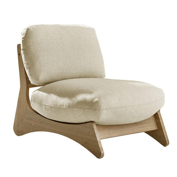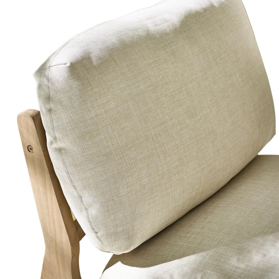 Stylish wood and cream single seater sofa for indoor or outdoor use